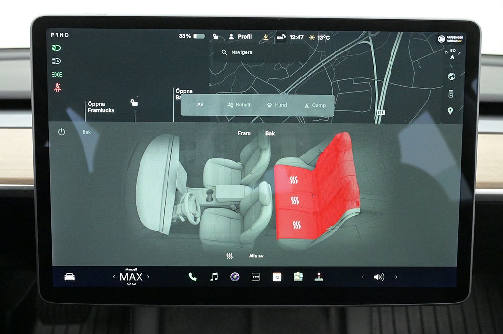- + Sätesvärme fram och bak