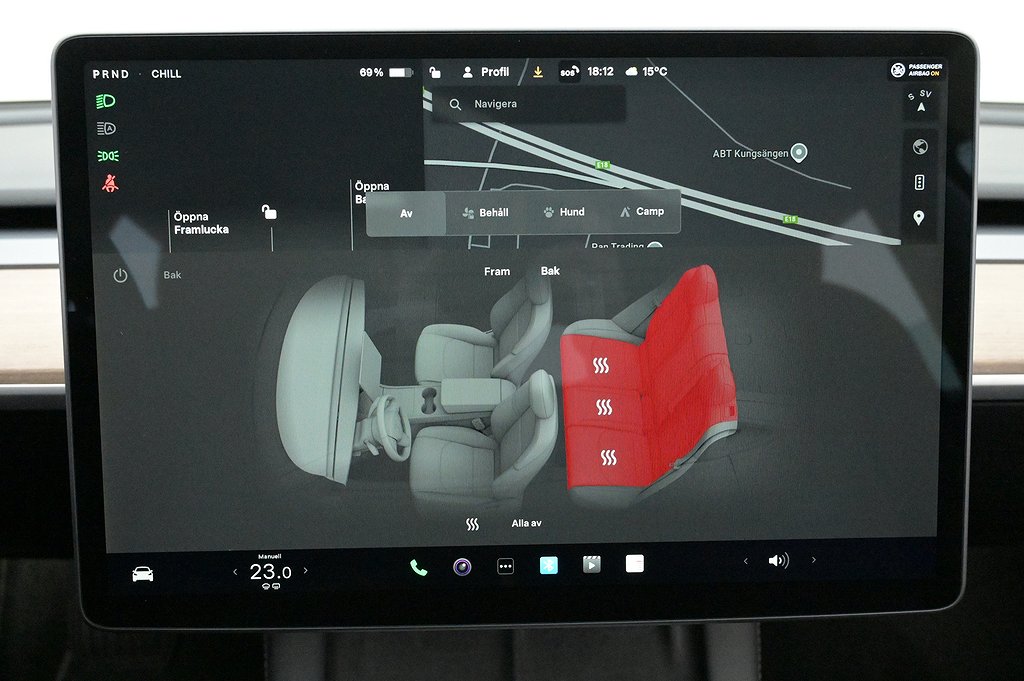 - + Sätesvärme fram och bak