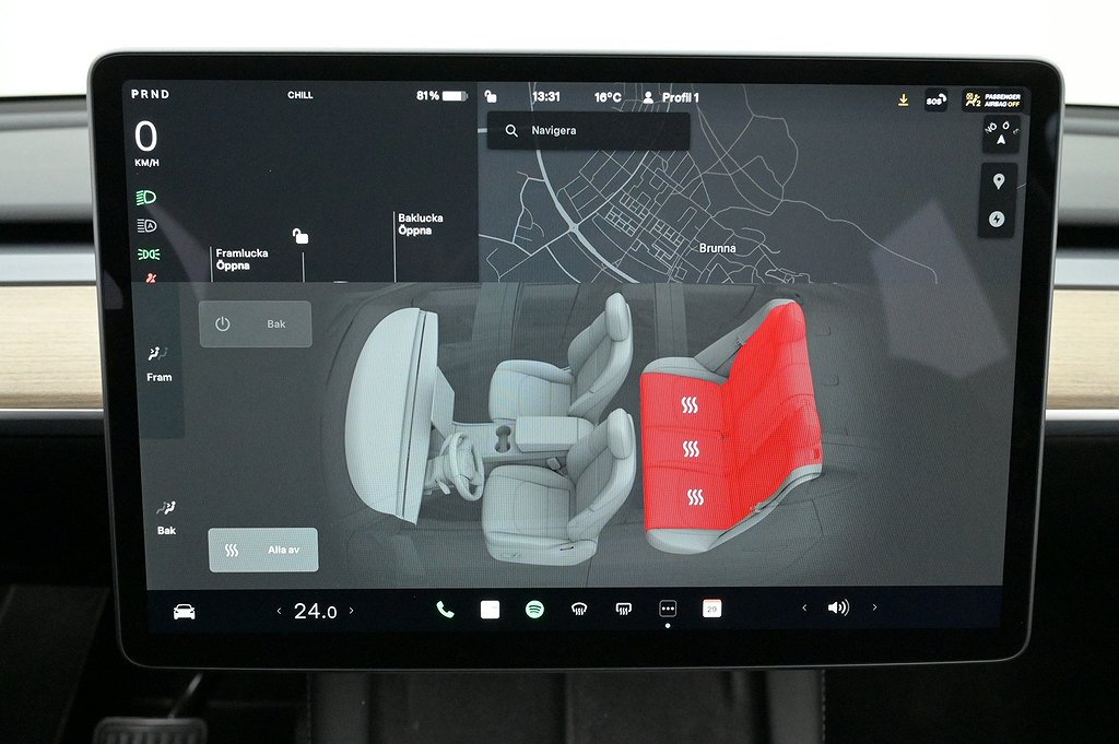 - + Sätesvärme fram och bak