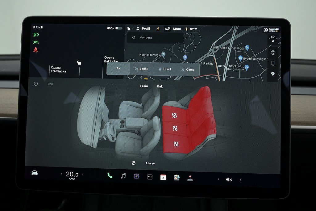 - + Sätesvärme fram och bak
