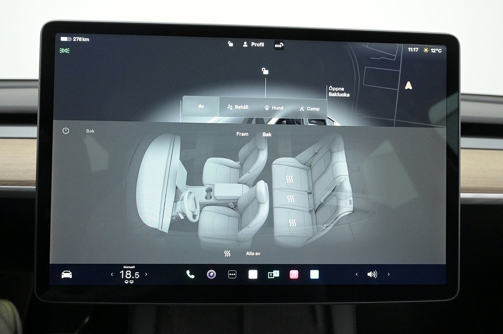- + Sätesvärme fram och bak