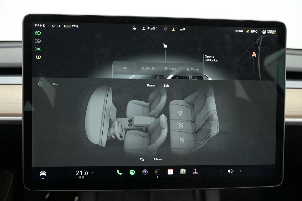 - + Sätesvärme fram och bak