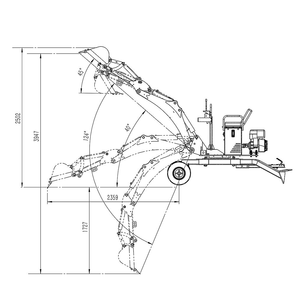 Välj märke Kellfri Minigrävare 360 med 15hk bensinmotor