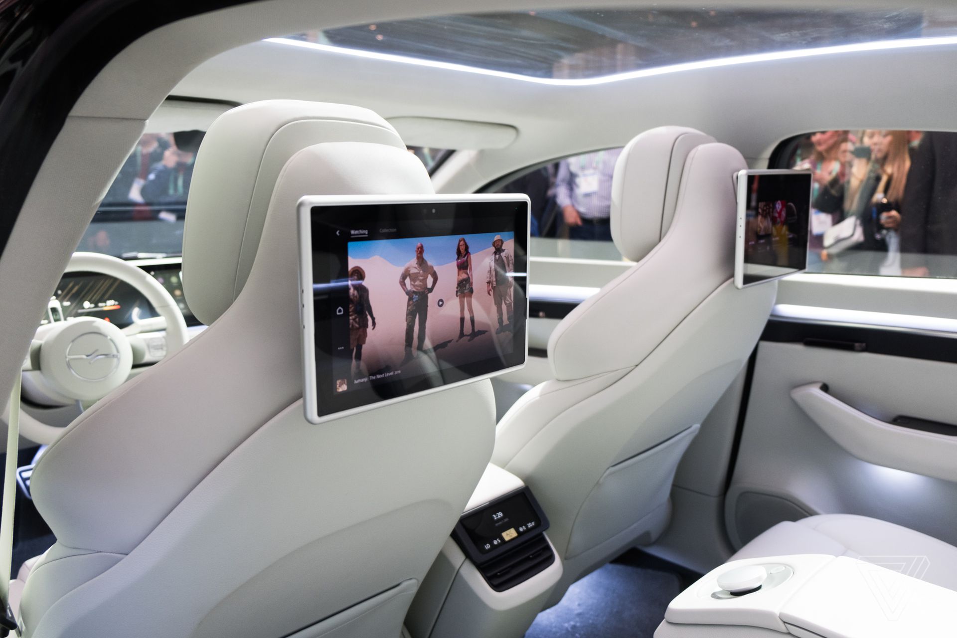 Bakre sittplatser fråntas inte heller denna upplevelse eftersom de har sina egna pekskärmar. Sony har utrustat Vision-S med avancerad ljudutrustning inklusive högtalare i varje nackstöd vilket de säger skulle göra det möjligt för passagerare att titta på olika saker samtidigt.